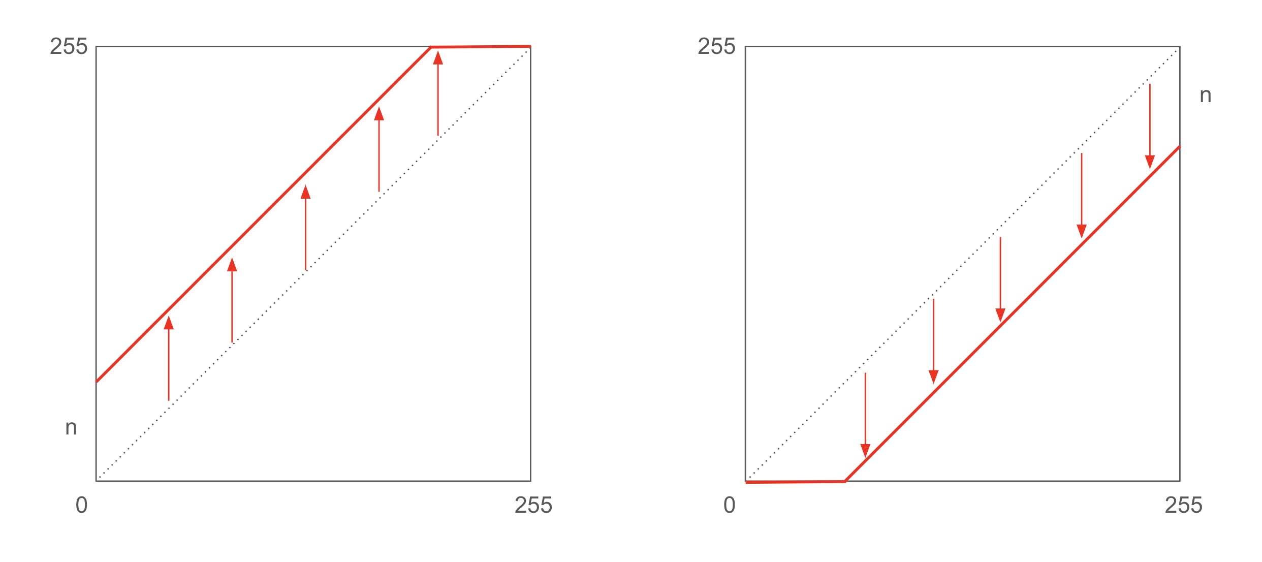 The brightness adjustment of an image can be expressed in a formula as follows: