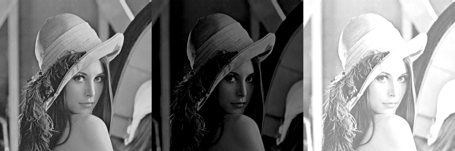 result = cv2.hconcat([gray, gray_dec, gray_inc])