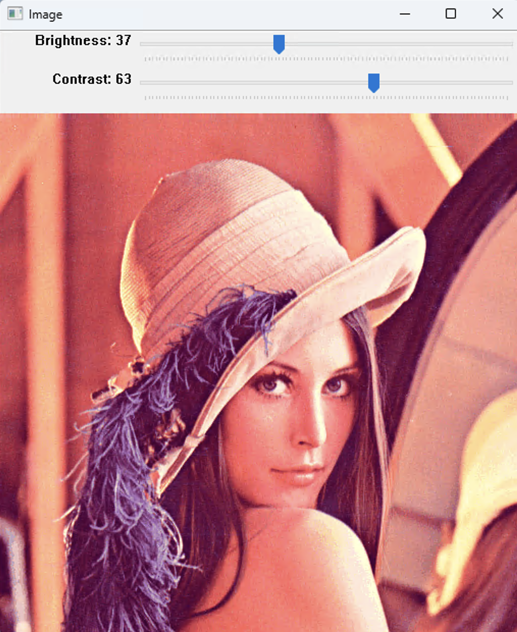 Trackbar is a slider-type UI element provided by OpenCV that allows users to directly control the brightness and contrast of an image in real time. Each value is controlled using the createTrackbar function of OpenCV, and the image can be updated immediately based on the changed values through Trackbar.